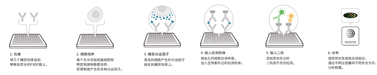 相比于ELISpot,F(xiàn)luoroSpot依舊維持了ELISpot的高靈敏度,還能對單細(xì)胞分泌的多種細(xì)胞因子同時(shí)進(jìn)行檢測,從而實(shí)現(xiàn)細(xì)胞亞群的鑒定和細(xì)胞多功能性分析。